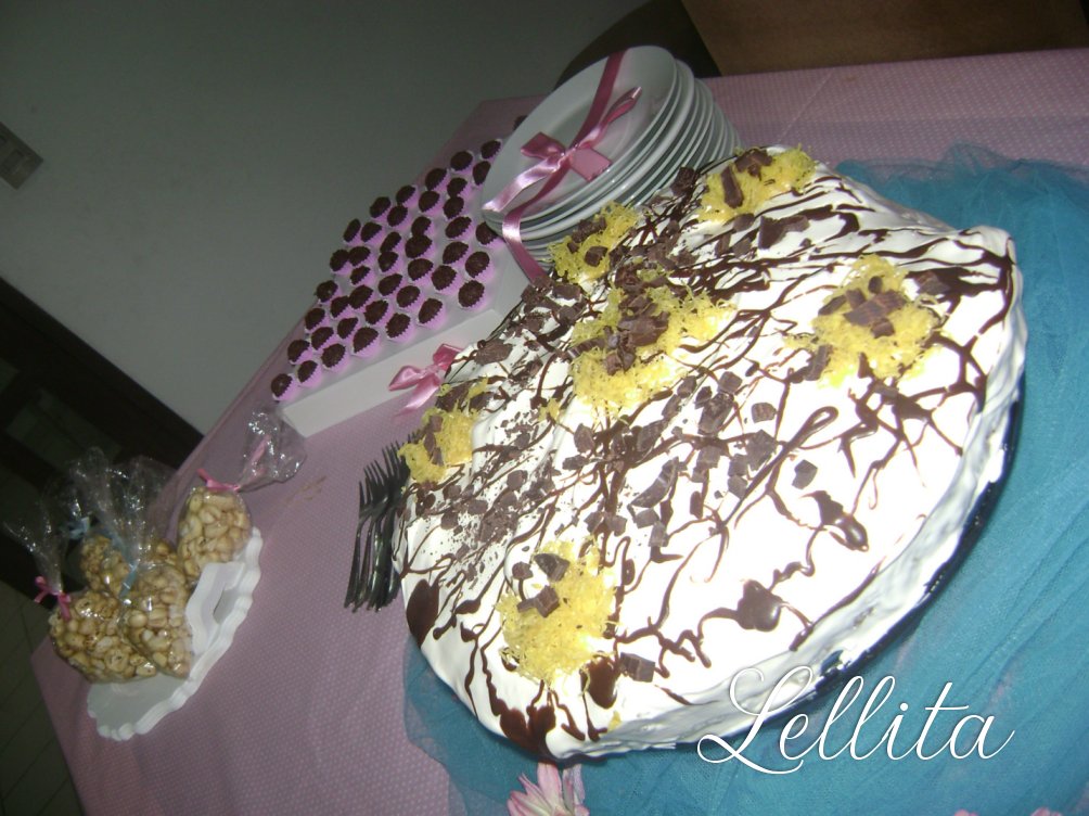 Então fiz um bolo serenata de amor, brigadeiro e o tão apreciado aqui em casa, docinho de queijo.